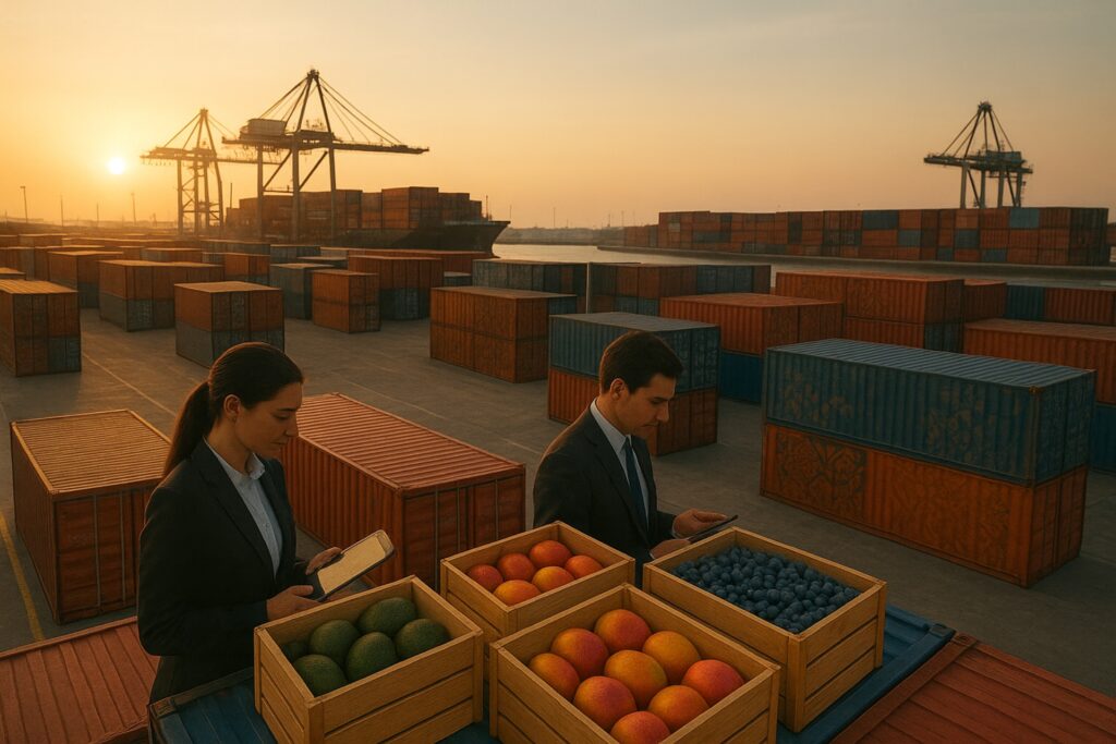 Class-1 fruit, vegetables and key export crops — sourced from certified farms and shipped globally with full traceability. A 30-day trade-credit line is available for approved clients.